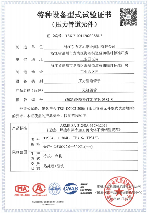 浙江東方齊心以不銹鋼系列產(chǎn)品為主導(dǎo),品種有不銹鋼管、奧氏體不銹鋼管、高溫合金鋼管、雙相不銹鋼管、鎳基合金管、冷凝器用管、U形管、核電管、不銹鋼管件、法蘭、閥門等。規(guī)格有6-2020x0.8-60mm,Ф16-25長度可達(dá)33m。公司擁有精密制造鋼管的各類機(jī)械設(shè)備25臺(套),其中各類冷軋管機(jī)15臺, 冷拔機(jī)10臺,天然氣熱處理爐2套。